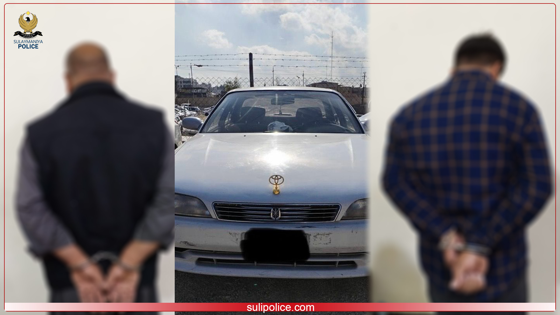 پۆلیسی پارێزگای سلێمانی ڕایگەیاند، دوو تۆمەتبار دەستگیركرا و دەستگیرا بەسەر ئۆتۆمبێلێكی دزراودا.